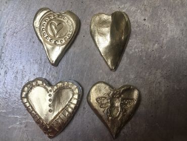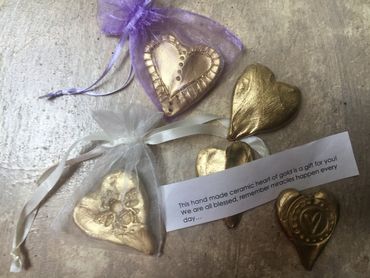 These ceramic items are small gifts of love. Angels, $36; Hearts $8.