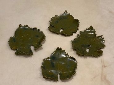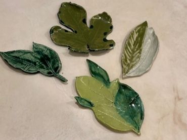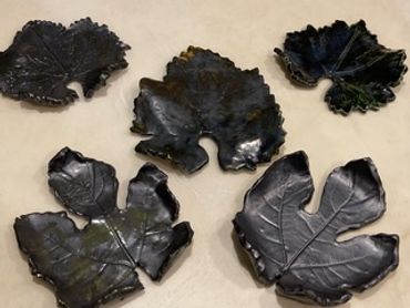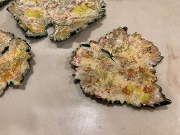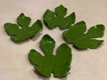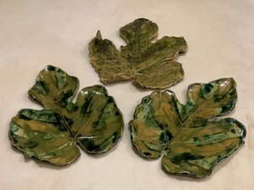 These beautiful ceramic plates are hand made by placing a live leaf on clay and creating the impression. The glazes are varied as are the types of leaves including grape, fig, mulberry, ivy, and sycamore to name just a few. Nature provides an elegant gift for your next party